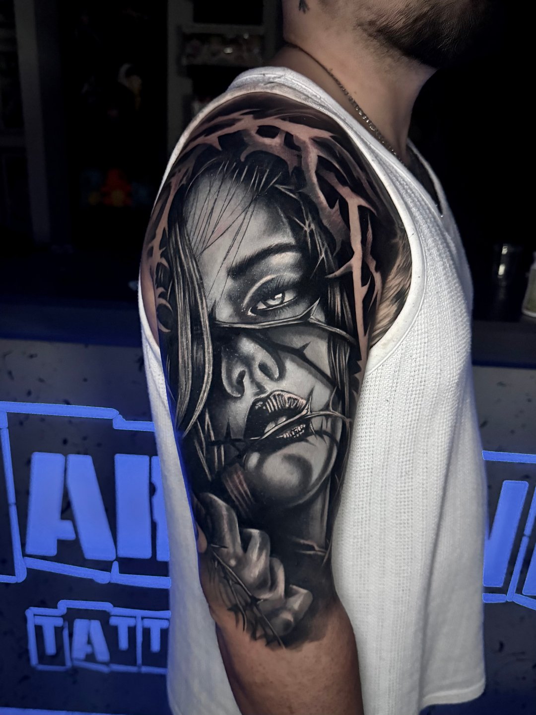 O Darkink Tattoo Shop é um estúdio de tatuagem especializado na criação de tatuagens personalizadas com elevado nível de detalhe. Com um tatuador experiente, transformamos ideias em arte única e duradoura. Trabalhamos vários estilos, incluindo tatuagem fine line, projetos exclusivos e tatuagens walk-in, ideais para quem procura fazer uma tatuagem com qualidade e rapidez. Como tattoo shop e tattoo studio, garantimos um ambiente profissional, seguro e focado em cada cliente. Se procura uma equipa especializada em varios estilo ou estúdio de tatuagem de confiança, oferecemos acompanhamento completo do conceito ao resultado final, com foco na higiene e excelência artística.
